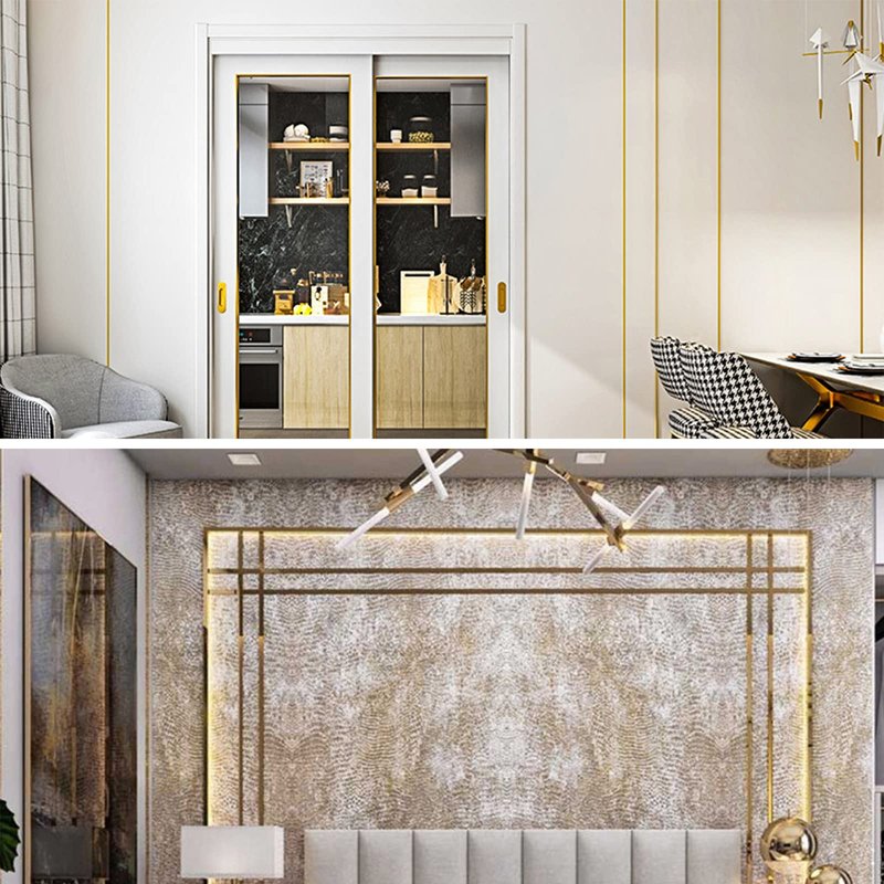 - DIY Wall Trim Molding: This gold metalized mirror-like trim is made of 201 stainless steel, you can bring the personal color-decorative style for your house, change the bald white floor and wall, give your house an entirely new look.