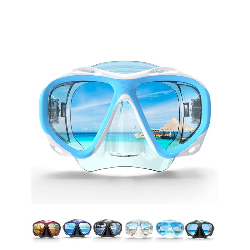 - 【Double-Lens Panoramic View】Fashion integrated frame swimming mask with double lens offers a 180° wide view for underwater exploration. Better field of vision allows you to capture every amazing moment in the sea and share it with your friends and family.