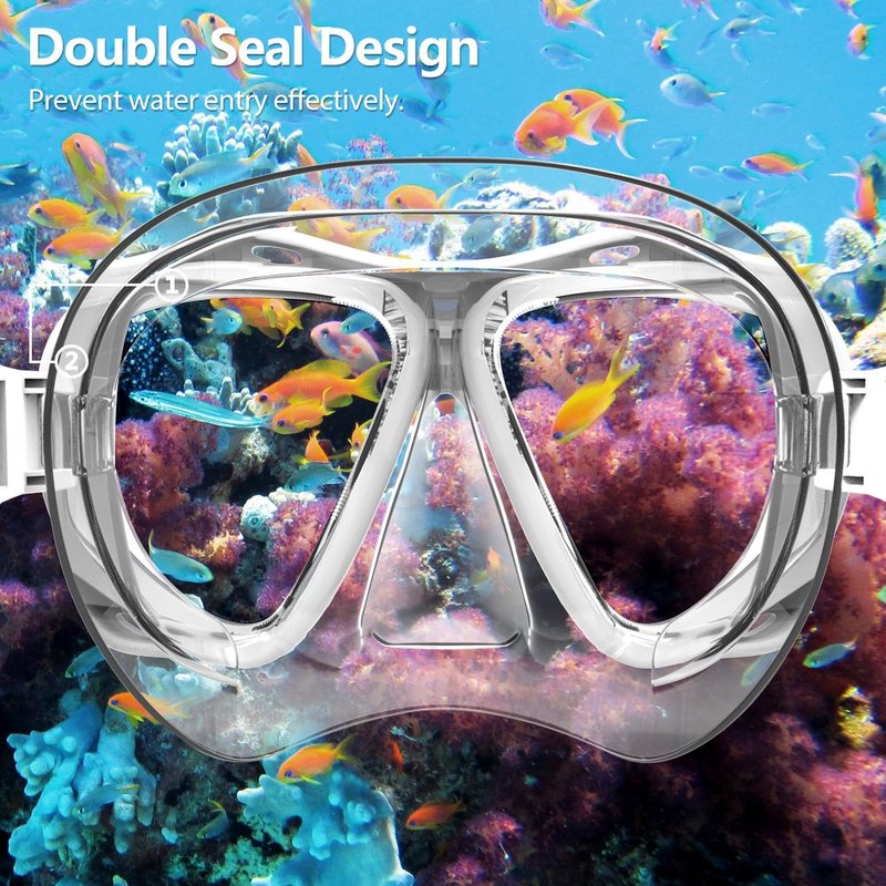 - 【Tempered Glass Diving Goggles】Scuba mask with shatter-resistant glass lenses to withstand deep water pressure. Scratching resist lens instead of polycarbonate enables you a clearer view under water and hardly to leave any scratches to your lens. Giving you a safer swimming and diving experience.