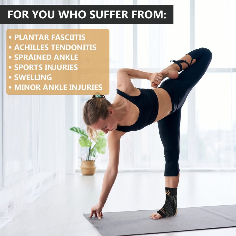 Copper Ankle Brace Compression Sleeve Support for Women & Men - Adjustable Strap for Arch Support - Plantar Fasciitis Brace for Sprained Ankle, Achilles Tendonitis Pain, Injury Recovery, Running(XL)