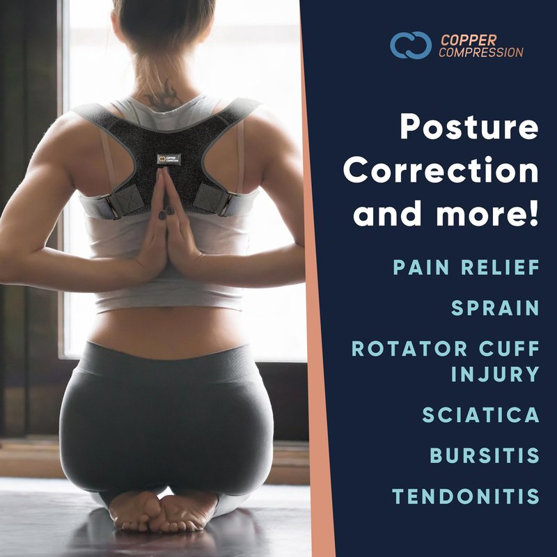 - FIND THE STRENGTH TO HEAL! The Copper Compression Next Generation Posture Corrector gently and naturally retrains your upper back muscles while encouraging proper spinal positioning. Your shoulders and back will begin to strengthen all on their own. It supports you after surgery, and works with physical therapy for injury rehabilitation. Perfect for slumping shoulders, hunching, neck & back pain, upper back issues, tendonitis, stiff or sore muscles, tendons & joints, and more!