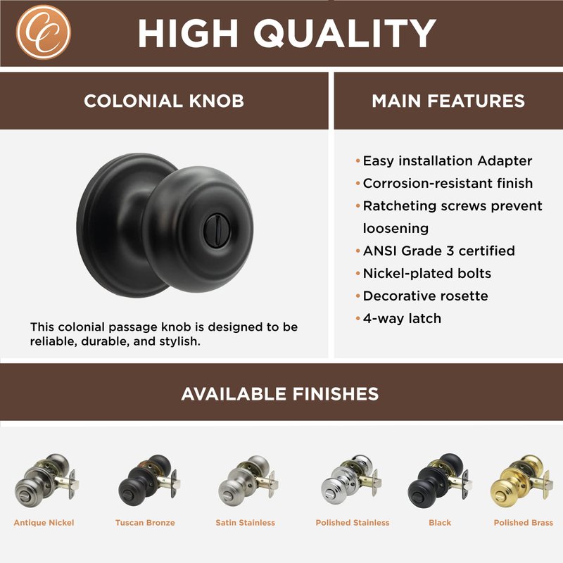 - DURABLE ALL METAL CONSTRUCTION - Made with high quality materials, these door knobs feature solid brass cylinders, heavy duty steel latches, and nickel plated bolts that are durable against wear and tear