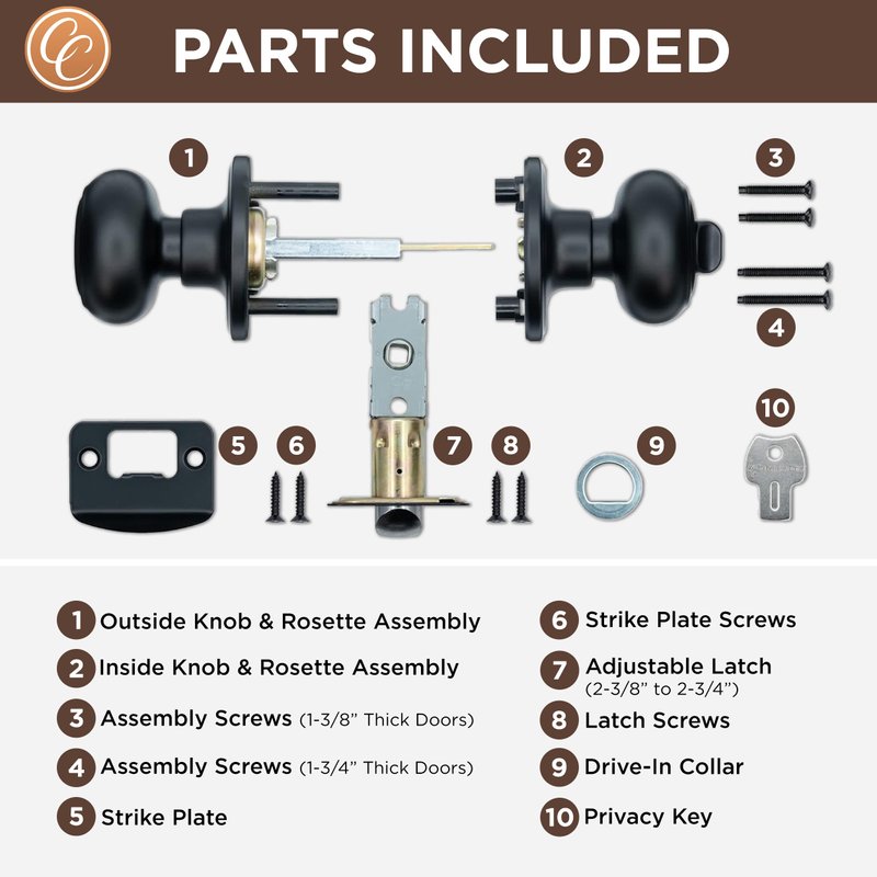 - ELEGANT DESIGN - These Copper Creek bedroom and bathroom door knobs feature round corner adjustable latches, decorative rosettes, and a rich matte black finish, perfect for enhancing your aesthetic when upgrading, remodeling, or building a new home