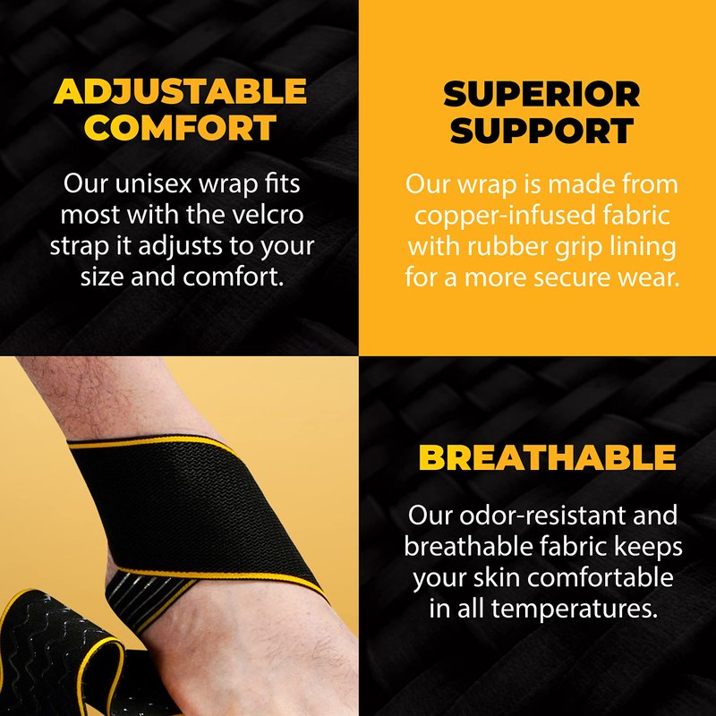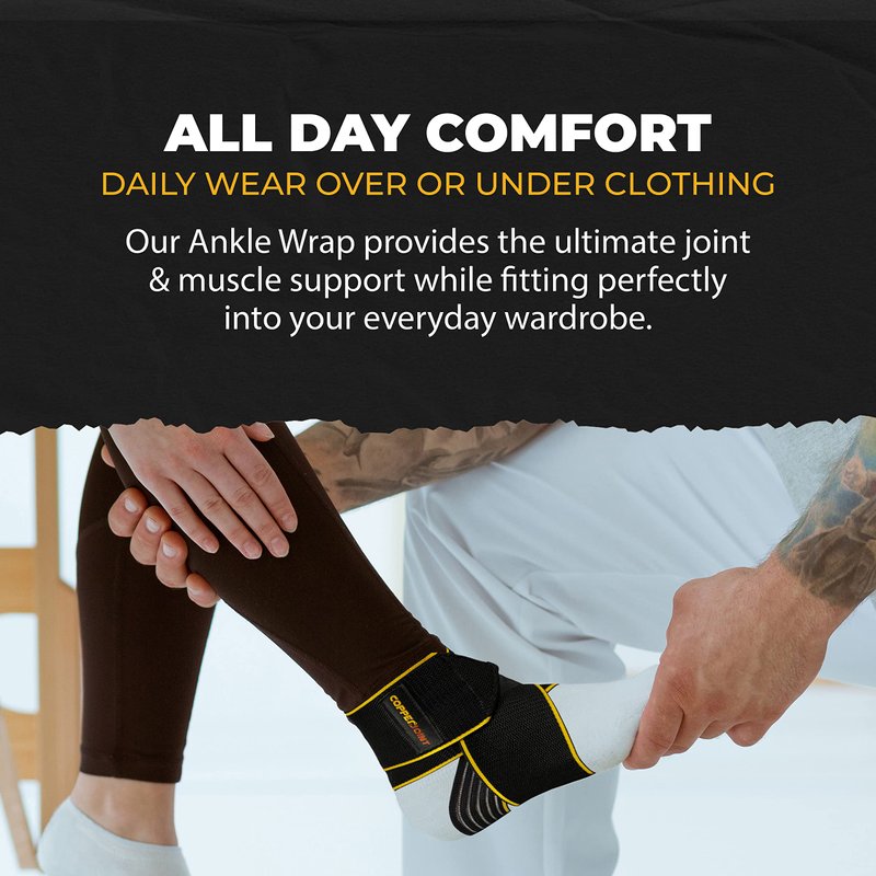 CopperJoint Ankle Wrap - Arch Support Brace, Achilles Tendonitis Relief, & Plantar Fasciitis Relief - Copper Infused, Lightweight with Adjustable Strap for Foot & Ankle - All Day Comfort