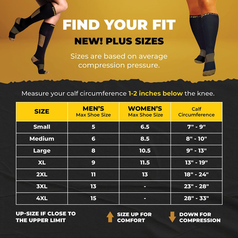 Discover The Support You've Always Needed. No matter who you are, we all know that leg pain can be limiting and detrimental to your daily lifestyle. If you're looking for a way to relieve leg pain, then CopperJoint Long Compression Socks are a must. They provide optimal support while still allowing you to have full mobility and be comfortable throughout your day. They fit high on your leg just under your knee to provide calf and ankle compression and overall leg pain relief. Our copper compression socks are here to help you in any situation. Our diabetic socks for men and women can be used as running socks, hiking socks, compression socks for nurses, maternity compression socks, and more. They help treat soreness, growing pains, shin splints, varicose veins, and many other leg pains you may experience. They can also help promote blood flow and circulation. These also make great compression socks women for pregnant women and diabetic socks women 9-12 size circulation. Get the support you need so you can live pain free!