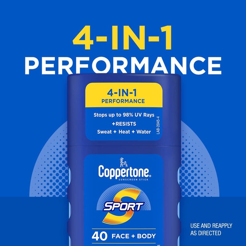 - Outdoor Protection: Coppertone Sport body and face sunscreen stick offers UVA/UVB protection for outdoor activities