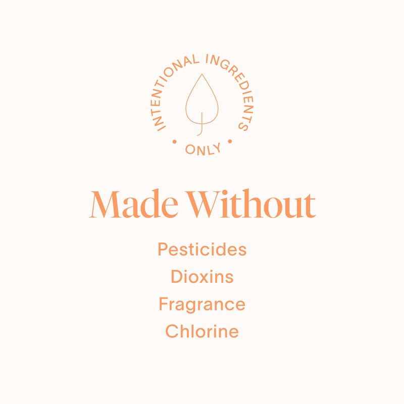 - 100% ORGANIC COTTON: Tampons made from 100% certified organic cotton – because what you put in your body matters. Made without pesticides, dioxins, rayon, or chlorine; free of fragrance and dyes. FSA/HSA Eligible.