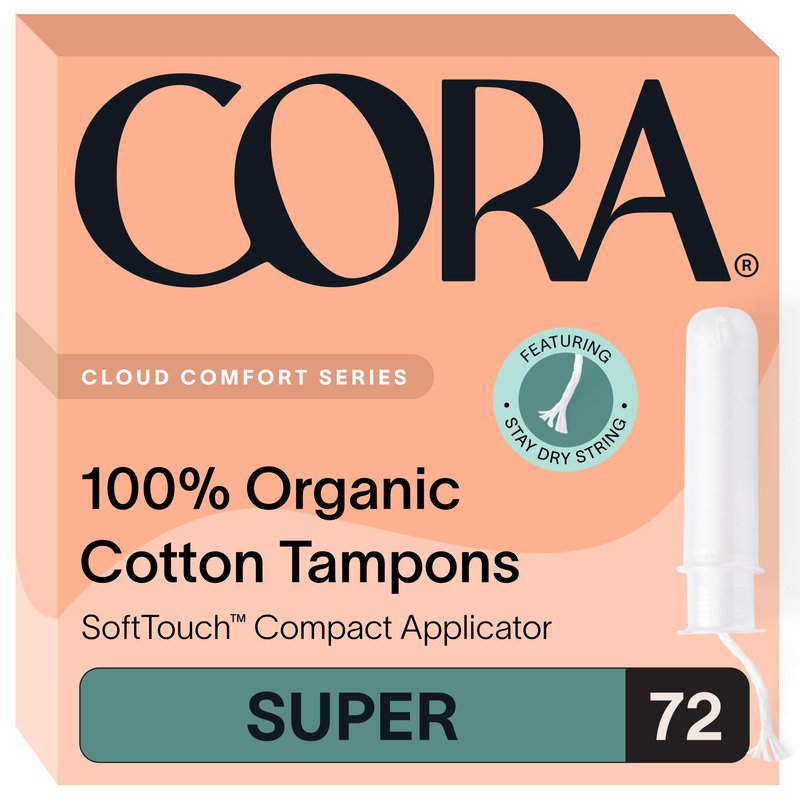 Cora Organic Applicator Tampons | Super Absorbency | 100% Organic Cotton, Unscented, BPA-Free Compact Applicator | Leak Protection | Packaging May Vary | 72 Total