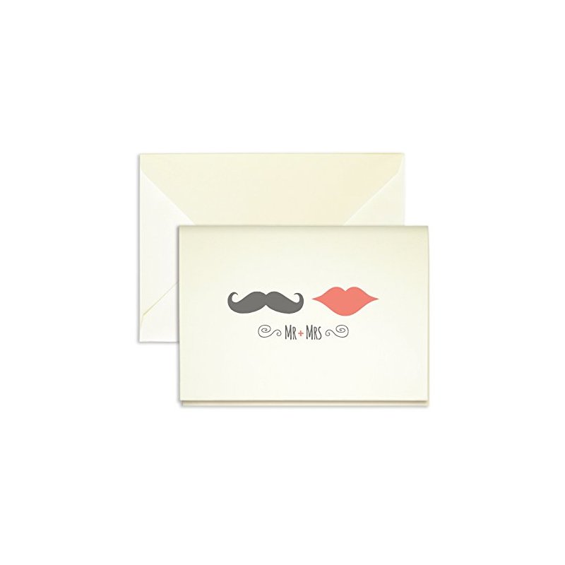 - This design features a fun and modern lips and mustache to stand for the new Mr. & Mrs.