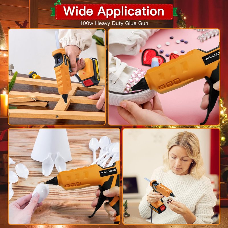 - Professional and Efficient: Our wireless glue gun is 100W, providing smooth and professional results. It is suitable for various repair tasks on wood, metal, and ceramics, as well as for DIY craftings. The nozzle design prevents glue leaks, ensuring precise application and minimizing waste.