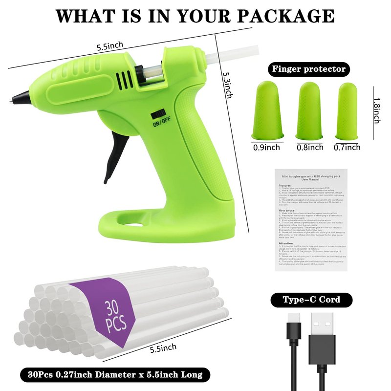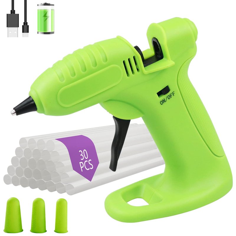 - 【30 Hot melt sticks & Stand-up Base Design】Our hot glue gun cordless comes with 30 super glue sticks (0.28 "X 5.9") and 6 figer protectors to prevent you from accidental scalding. The upright base is designed with a flat and stable base. Keep mini hot glue gun upright and can securely stand on the table. When working on Arts and Crafts,no need to worry about the glue gun cordless & rechargeable fall over.