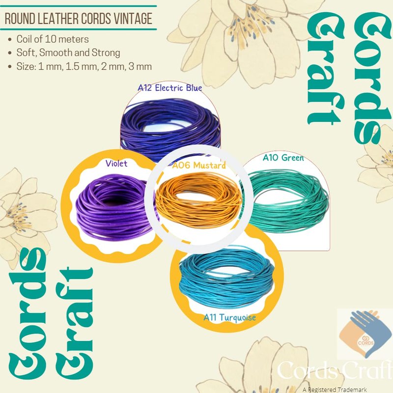 Cords Craft® | 3mm Round Leather Cord Leather Matte Finish String for Jewelry Making Bracelet Beading Work Hobby and DIY Craft (Natural Dye Mustard, 10.93 Yards) | Roll of 10 Meters Leather Cord