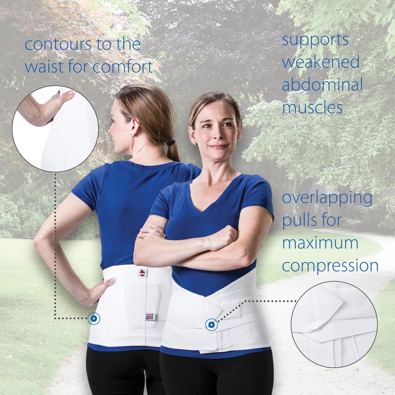 - Supports weakened abdominal muscles and eases lower back pain