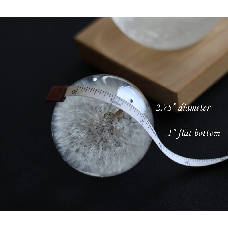 The dandelion Seed Puff was captured at its peak and preserved in a crystal clear paperweight. The glass-like globe, made of resin, allows the dandelion seed head to be viewed from all sides. Due to the nature of the product, each paperweight is unique, with no two being identical, making it a special gift. dimensions 2.75inch Diameter.