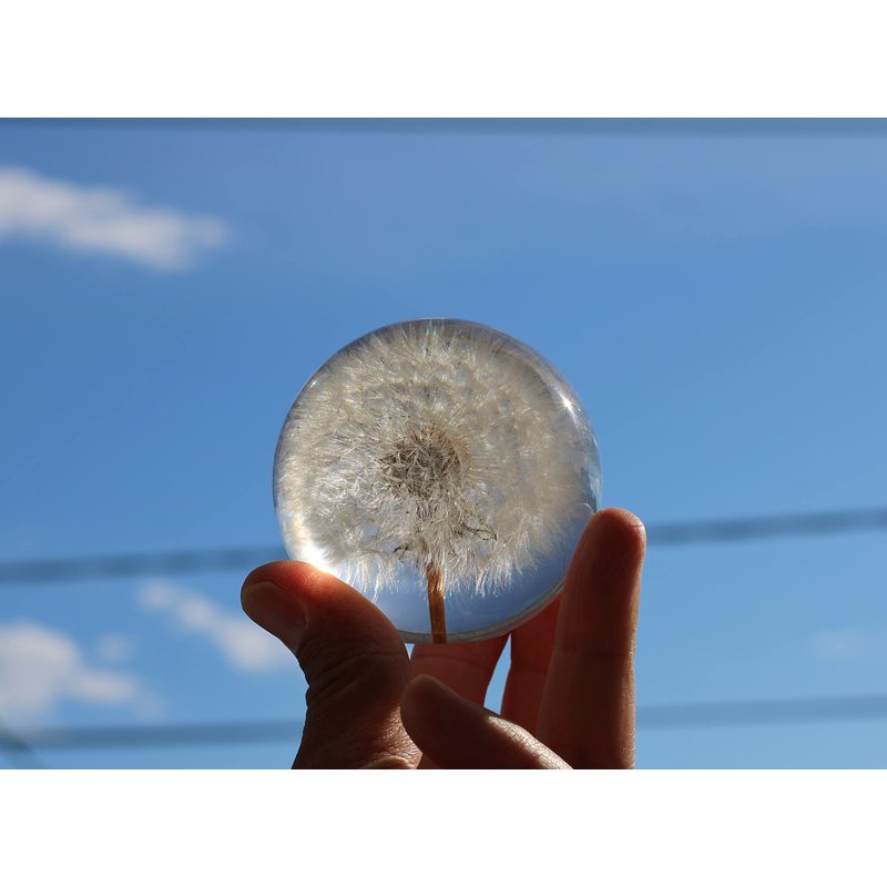 - Made from Real Dandelion in Resin Ball. Dandelion Seed Puff was captured at its peak and preserved in a crystal clear paperweight.