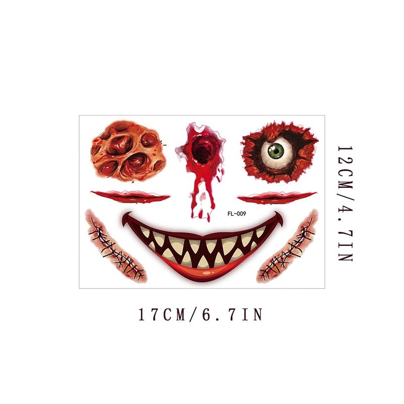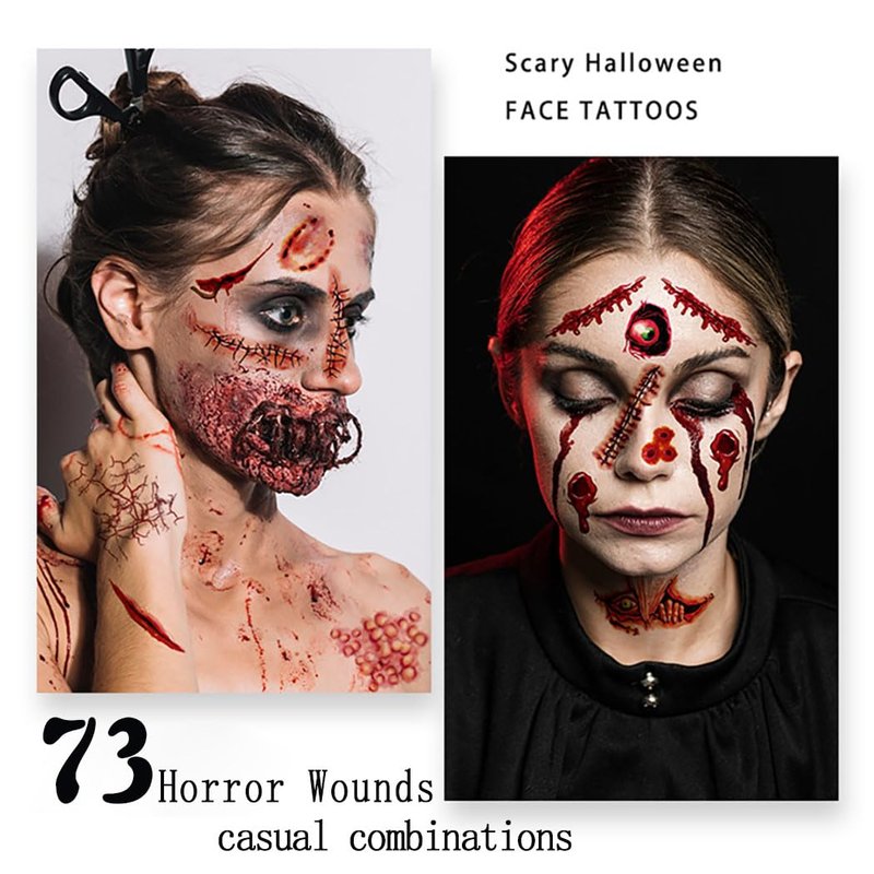 - Terrifying fake face stickers is easy to use, pressing fake scars and tattoos onto the skin and thoroughly soaking them with a sponge. Wait for 20-30 seconds, remove the backing paper, comple.