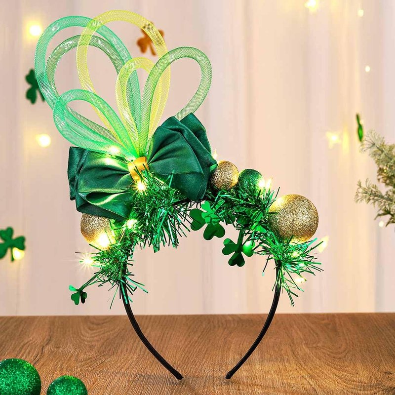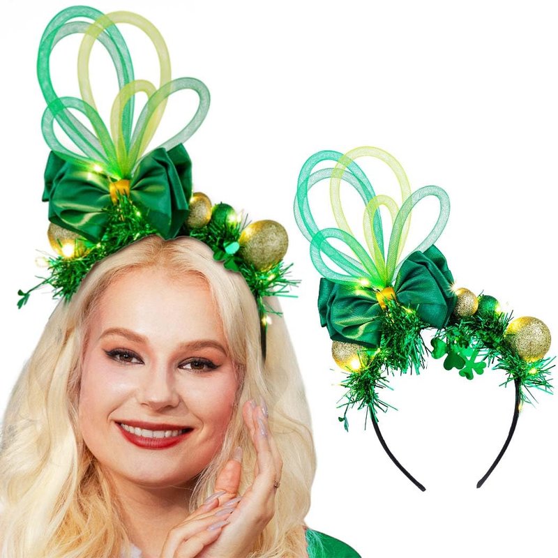 - Design: Light up oversized hat bow headbands with bling tinsels can light up all day and night, making you more attractive and unique in festivals. And shamrocks in hairbands will bring you faith, love and Hope. Pretty headbands!