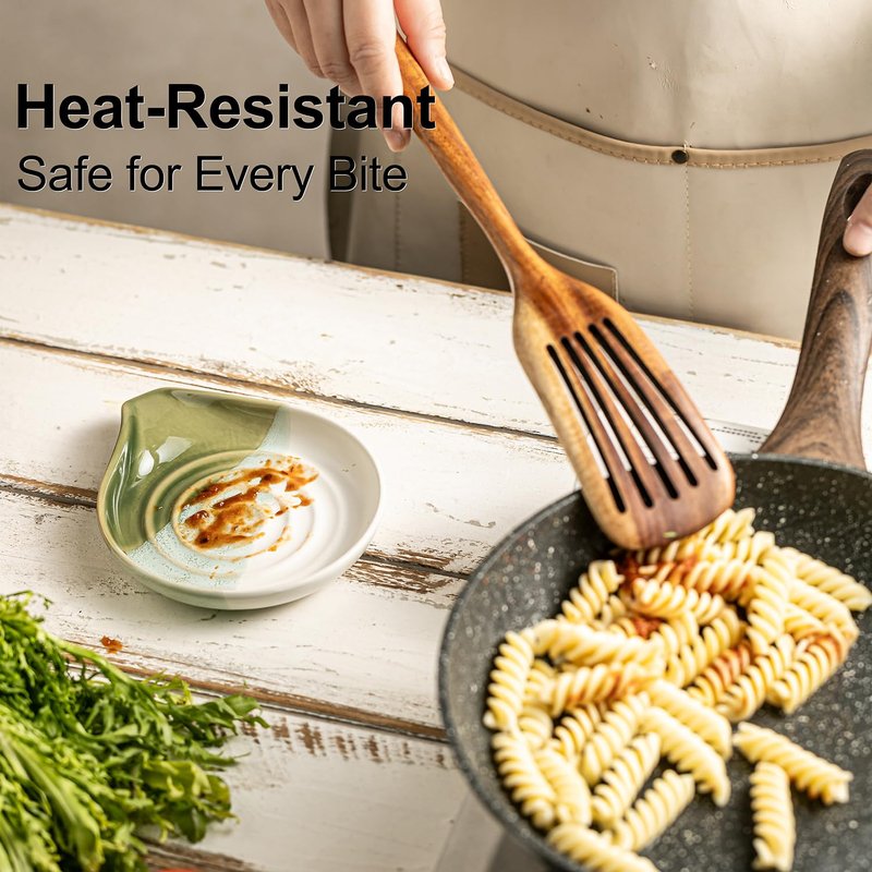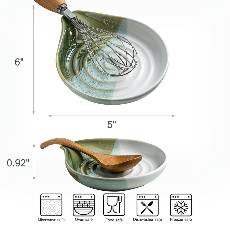 This ceramic spoon rest (6.1 x 5 inches) is designed to hold spoons, spatulas, and ladles, keeping your kitchen organized. Its elegant swirl design and reactive glaze complement any decor. Made of heat-resistant, nonstick ceramic, it’s dishwasher-safe and easy to maintain. The stable, heavy design prevents utensils from slipping off, making it practical for daily use while protecting your utensils from scratches.