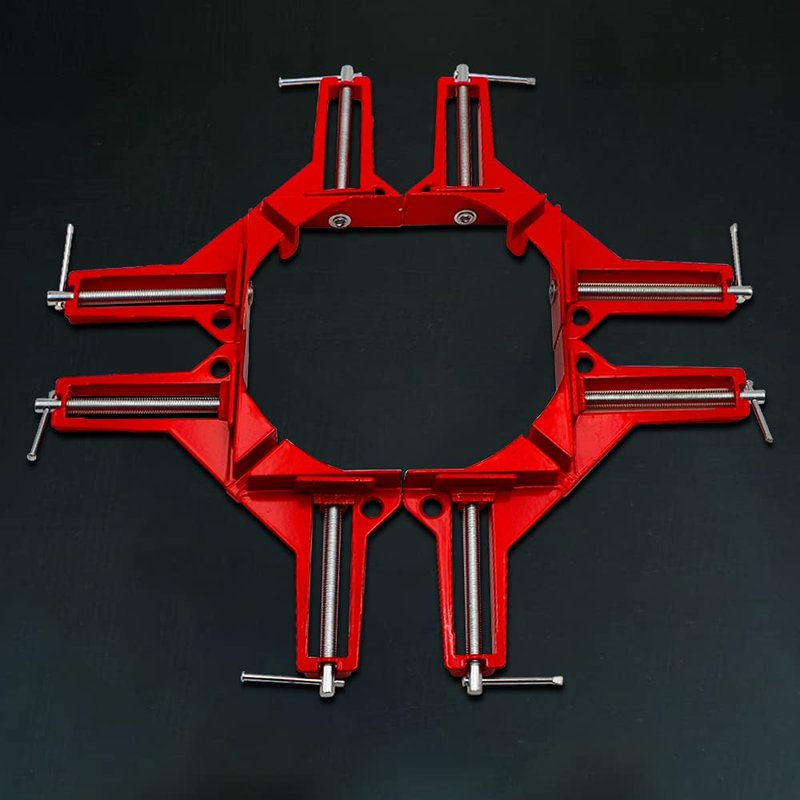 - §【Versatility】: The woodworking corner clamps align two pieces of wood, planks, metal, or glass into the clamp at a 90-degree angle. Moreover, the right angle clamps set is suitable for fixing fish-tanks, joining photo frames, installing furniture, welding, and molding, featuring holes in the base that allow them to be mounted to a workbench to add more stability for setup.