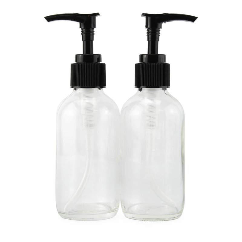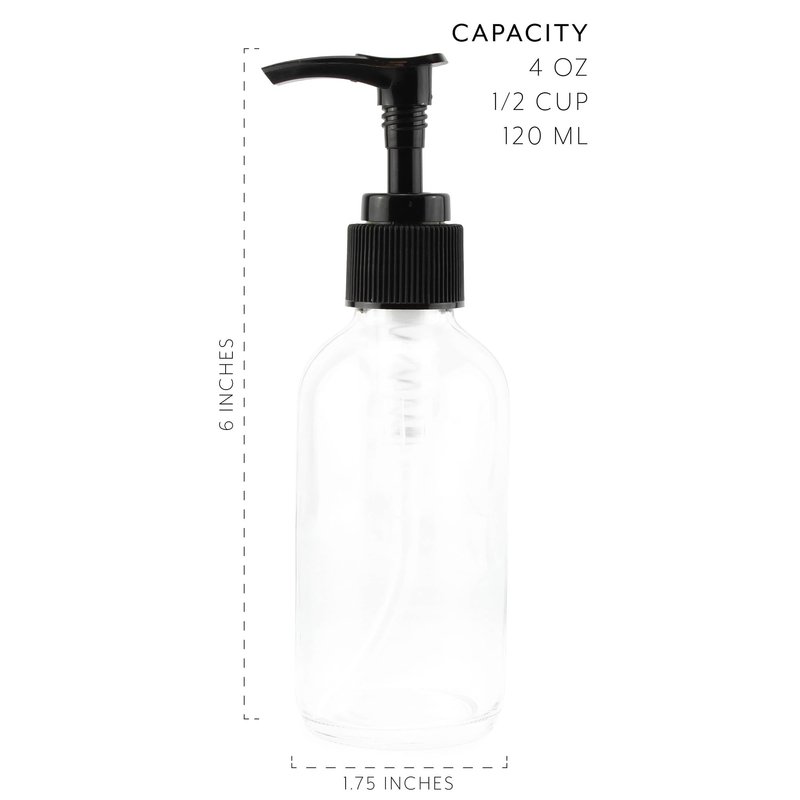 These attractive empty 4oz clear glass pump bottles are perfect for any at home cosmetic, cleaning, cooking, aromatherapy, beauty care or DIY uses.