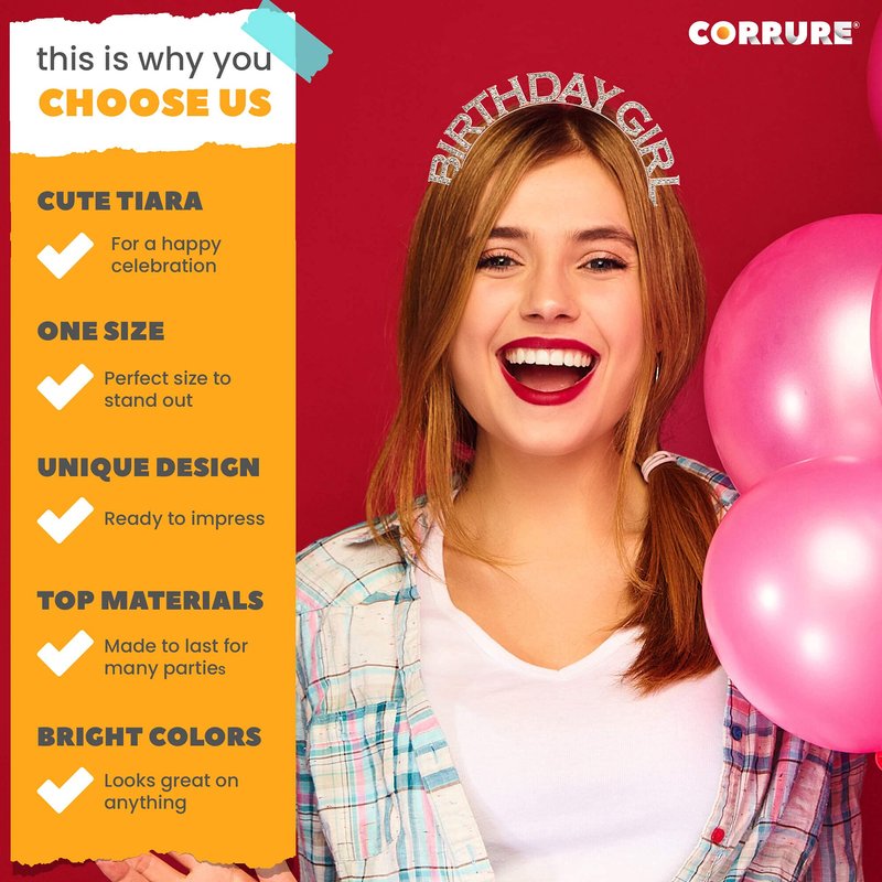 CORRURE Birthday Girl Rhinestone Headband Tiara, Rose Gold Birthday Crown Headpiece, Party Hair Accessories for Girls and Women, Sweet 16, 18th, 21st, 25th, Any Other Bday Party Decorations Supplies
