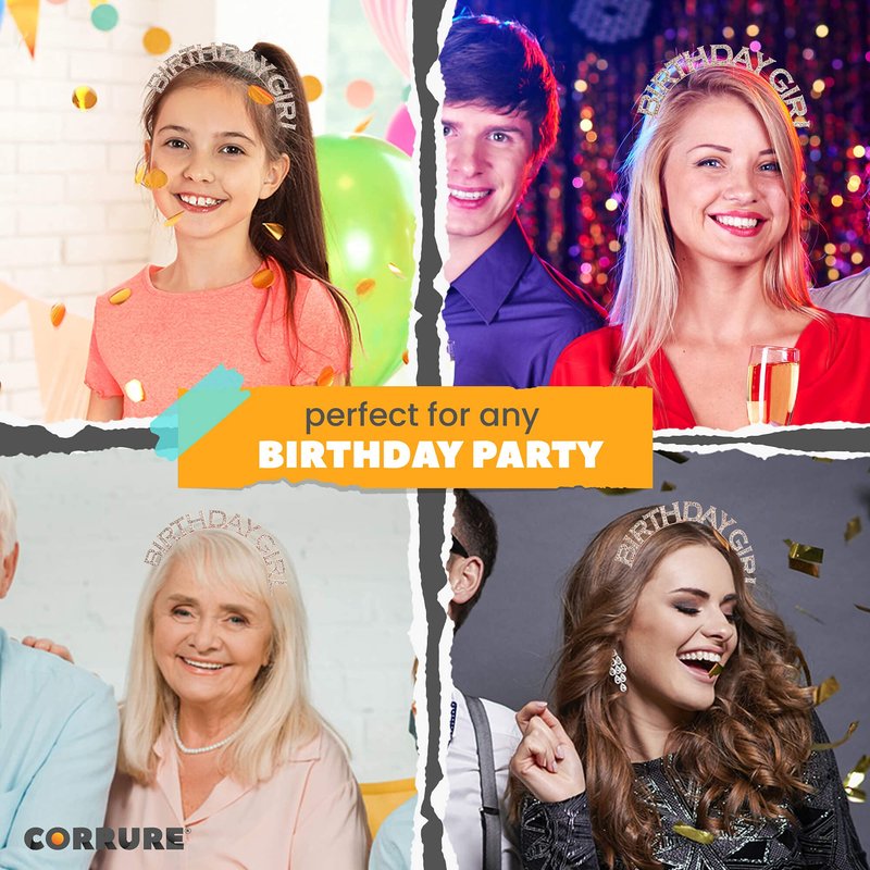 Stand out from the crowd and glow at your own party with this beautiful "Birthday Girl" headband. Adds an extra special touch to any birthday celebration. Have fun and celebrate in style effortlessly with your entire squad.