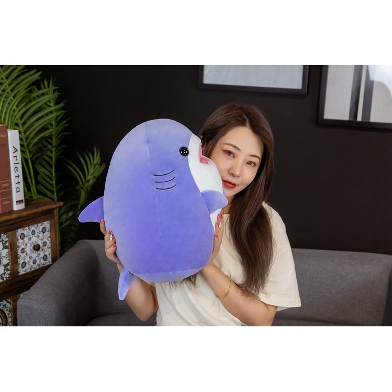 In the design,facial expression is true and lovely,you feel it's a real friend to accompany and share anything to her.We hope you feel our intentions and warmth from product details of our Shark hugging pillow.