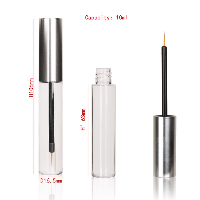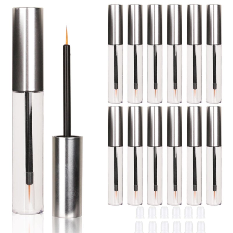 COSIDEA 12PCS Empty plastic Matte Silver 10ml Eyeliner tubes packing Vials Bottle Containe Eyeliner Brush Applicator for DIY Eyelash Growth Oil
