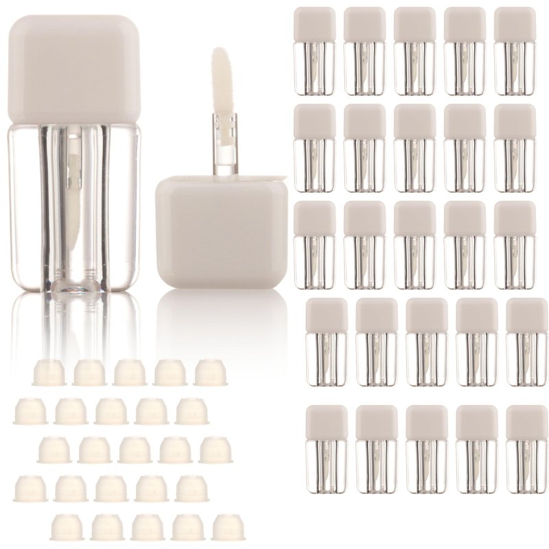 COSIDEA 25PCS Empty White Mini Square Lip Gloss Tubes 4ml 0.13 OZ lipgloss Tube with Wand Applicator for Lip oil tint bottles container