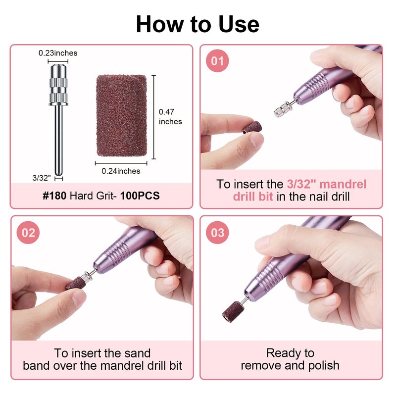 - Multifunctional: Designed to be suitable for most size 3/32" nail drill machine. With a design suitable for most size 3/32" nail drill machines, these sanding bands can accomplish various professional jobs. Whether you need to engrave, grind, route, sand, smooth, or polish, these sanding bands are perfect for all nail arts as well as cuticle removal