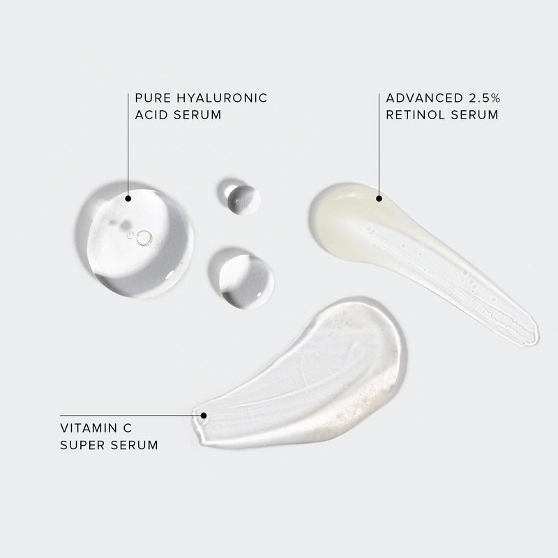 - Get the serums that deliver powerful results with this best selling kit. You'll love the proven benefits of hyaluronic acid, Vitamin C, and retinol for hydrated, brighter, and fresher skin.