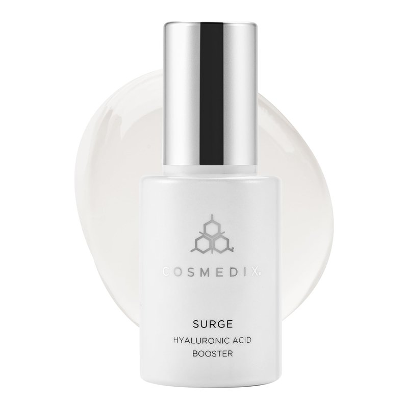 - Hyaluronic Acid Booster: Cosmedix Surge is an ultra-dewy Hyaluronic Acid Booster serum that deeply moisturizes dry, dehydrated skin with a specialized blend of three forms of hyaluronic acid (1.5%), niacinamide and kiwi fruit water.