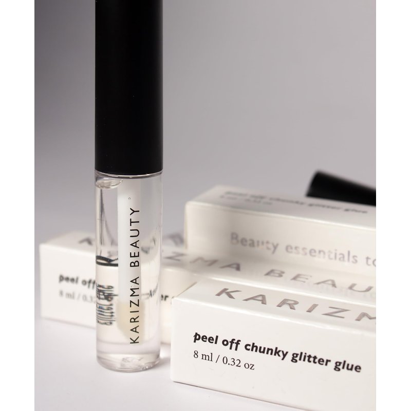 The perfect festival glitter glue is here. Once you go Karizma, you’ll never go back. We've made the glitter removal experience easier for you with our new peel off glitter glue formula. Our glue is perfect for after long days at the festival when you just want to take off your makeup and glitter without all the mess in your tent. Our simple, peel off removal is clean and easy with no mess, leaving your skin clean without the need to scratch and scrub off the glitter off your skin. This formula works seamlessly with our chunky glitters on the face and body. Apply a thin layer of glue onto clean, dry skin using the applicator brush directly where you want glitter to be applied. Dust your favourite glitter on top of the glue and allow to dry. Let sit for at least one hour before attempting to peel off. The glitter glue comes in a tube with an easy to use applicator, the product is 9ml. Beauty essentials to illuminate your glow.