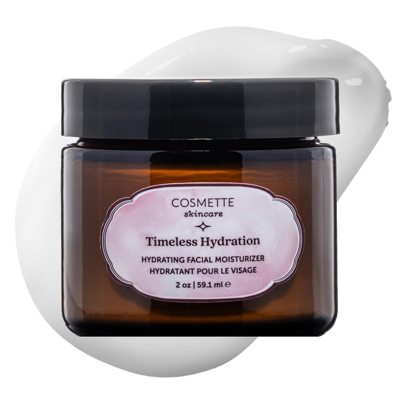 Elevate your skincare ritual with Cosmette's Timeless Hydration moisturizer, designed to provide your skin with unparalleled hydration and nourishment. Our advanced formula blends nature's finest hydrators—Rosehip, Meadowfoam, Squalane, and Tamanu—with three weights of Hyaluronic Acid and Vitamin C + E to deliver deep moisture and a luminous complexion. This age-defying moisturizer stimulates collagen production, reducing fine lines and enhancing skin elasticity. Enjoy a natural, subtle fragrance that transforms your daily skincare routine into a lavish experience. Perfect for those seeking not just hydration but a profound rejuvenation, Cosmette's Timeless Hydration is the key to youthful, radiant skin.