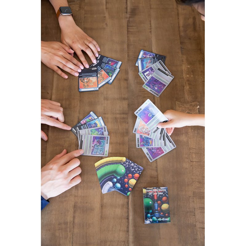 Do you like card games where you need to plan how you’ll outsmart your opponent?Do you believe you need a strategy and game plan when facing an opponent?Are you interested in a card game that can help you better understand Cognitive-Behavioral Therapy (CBT)?Discover the cunning game of Cosmic Battle Training. Prepare to go to battle and outwit your opponents in this strategic card game of action and defense. Ideal for players 8 years of age and older, this is a card game that makes you think. It’s wonderful for anyone who wants to become more familiar with therapeutic concepts in Cognitive-Behavioral Therapy (CBT).Strategic playing cards allow players to express their thinking and creativity. Prepares youngsters with skills to think in many situations, investigate issues and come up with their own game plan.Why You’ll Love our Cosmic Battle Training Card GameIt stirs up the imagination and gets you thinking outside the box.Helps people become more familiar with therapeutic concepts found in Cognitive-Behavioral Therapy and learn which skills are most helpful against which common symptomsIt only requires 2 players.It’s a wonderful card game the family can enjoy.Makes a unique and entertaining birthday giftEncourages strategic thinking and decision makingIdeal for homes, schools, and therapyPerfect indoor/outdoor game for kidsWhat are you waiting for? Add our Cosmic Battle Training Card Game to your cart NOW and let the strategizing begin!Please Note:Cosmic Battle Training (CBT) Card Game is a therapy support tool. It is not meant to be therapeutic, or used to replace professional mental health treatment.See a news story on the game on KSL TV News!