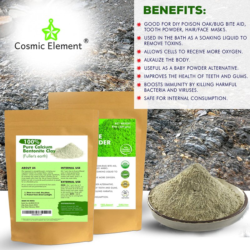 Established in 2015, Cosmic Element is a family owned Georgia based company whose primary focus is to provide natural products. You can ensure that our Calcium Bentonite Clay does not contain any fillers or synthetic ingredients. We only provide you with effective products made with high-grade ingredients that will assure your safety. Cosmic Element is your partner when it comes to following a healthy way of living!