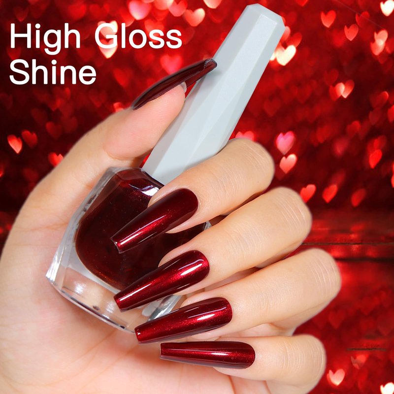 COSMOO 12ml Wine Red Nail Polish, Burgundy Red Quick Dry Nail Lacquer, Super Lustrous Nail Enamel Polish, Dark Red Iridescent Ultrachrome Nail Art Varnish