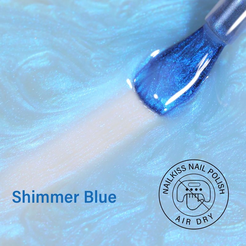 COSMOO Blue Shimmer Air Dry Nail Polish, Shimmer Blue Iridescent Quick Dry Nail Lacquer for Nail Art Varnish-10ml