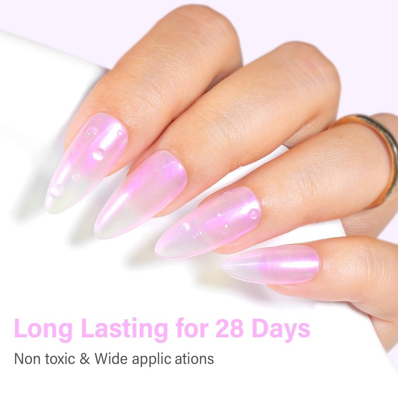 COSMOO Pink Shimmer Air Dry Nail Polish, Shimmer Iridescent Quick Dry Nail Lacquer for Nail Art Varnish-10ml