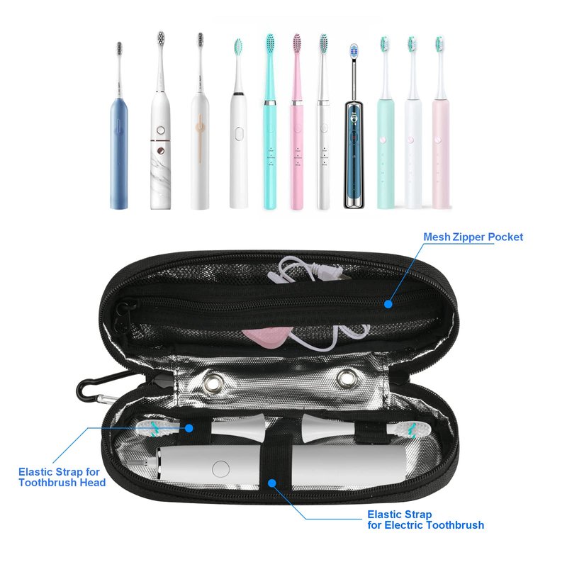 - LARGE STORAGE: main compartment with elastic straps provides secure keeping for your electric toothbrush and brush heads. Fits to keep 1 Pc toothbrush and 2 Pcs brush heads. Extra mesh pocket provides flexibility to keep the power cords and other accessories.