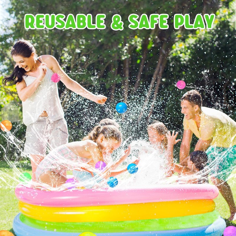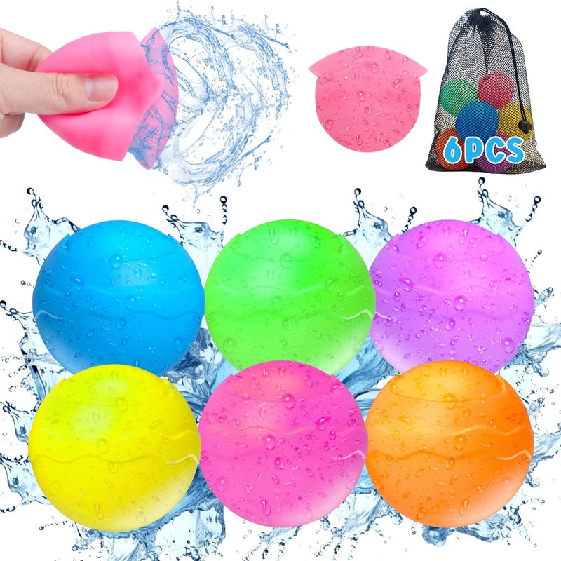 Splash into endless fun with COSOOS lightweight reusable water balloons in Summer. Designed for sustainability and convenience, these self-sealing splash balls provide the ultimate outdoor entertainment without the waste. Mess-free fun for whole family! Safe Design Made with high-quality, non-toxic silicone, our reusable water balloons are an eco-conscious alternative to traditional latex balloons. No magnets, Much Safer Without magnets, COSOOS refillable water balloons much safer for kids to play. Get children away from screen time and be active. Whole family can play together to enhance parent-child relationship and enjoy family happy hour. Child-Friendly, Great Water Toy Gift for Kids Around 2.5 inch in diameter and 20.6 g/ 0.73 oz weight, which is very friendly size for kids. Have ultimate fun in the yard, lawn, swimming pool, beach! Long-Lasting Unlike single-use water balloons, our product is designed for repeated use, ensuring you get maximum value and enjoyment. Reusable Water Balls Reuse these water balloons time after time with up to 8000 splashes per balloon! Fast-Fill Just open, dunk, self close and splash for the ultimate fun in summer. Auto Sealing Forget the hassle of tying knots. Our splash balls seal themselves so you can get back to the fun in seconds! Self seal that opens for the perfect splash on impact! Vibrant Colors for More Fun Each package contains a variety of bright colors, making them perfect for team games and easy to find in the grass. Package 6 Pack Colorful Water Ball for Kids 1 Mesh Bag