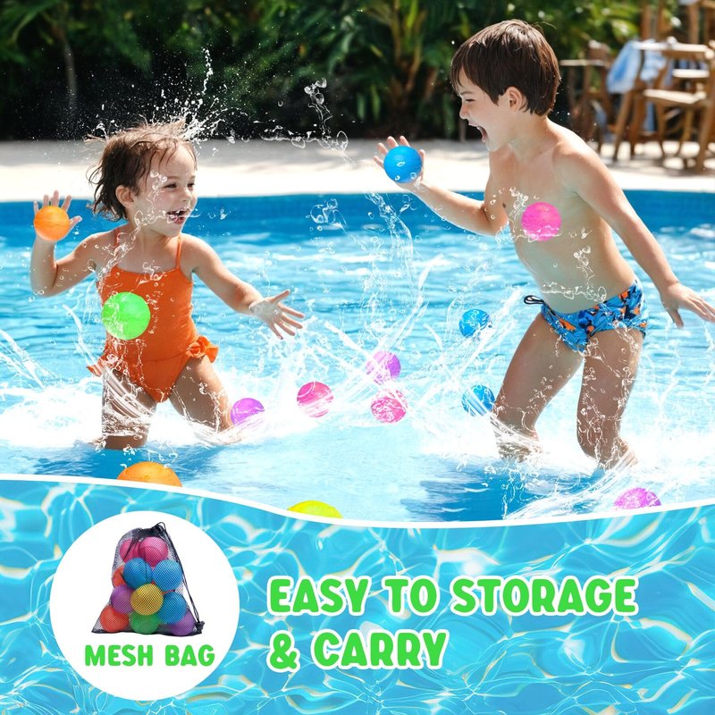 - Included Mesh Bag & Sustainability: Non-magnetic reusable water balloons are a fun way to enjoy summer with the environment in mind. Comes with an extra sturdy premium mesh bag to store and carry, keeping water splash ball dry and organized