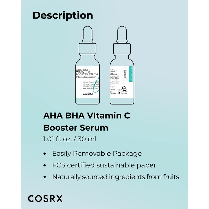 COSRX AHA BHA Vitamin C Booster Serum 1.01fl.oz/30ml, Anti Aging, Plumping, Hydrating Serum with Niacinamide, Not Tested on Animals, No Parabens, Korean Skincare