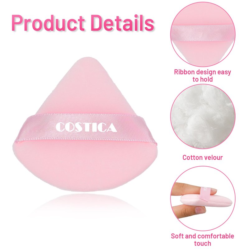 - COSTICA makeup puffs are made with soft sponge and velour, these powder puffs are perfect for wet or dry use and come in a dual-sided triangle shape to reach even the most difficult areas on your face.