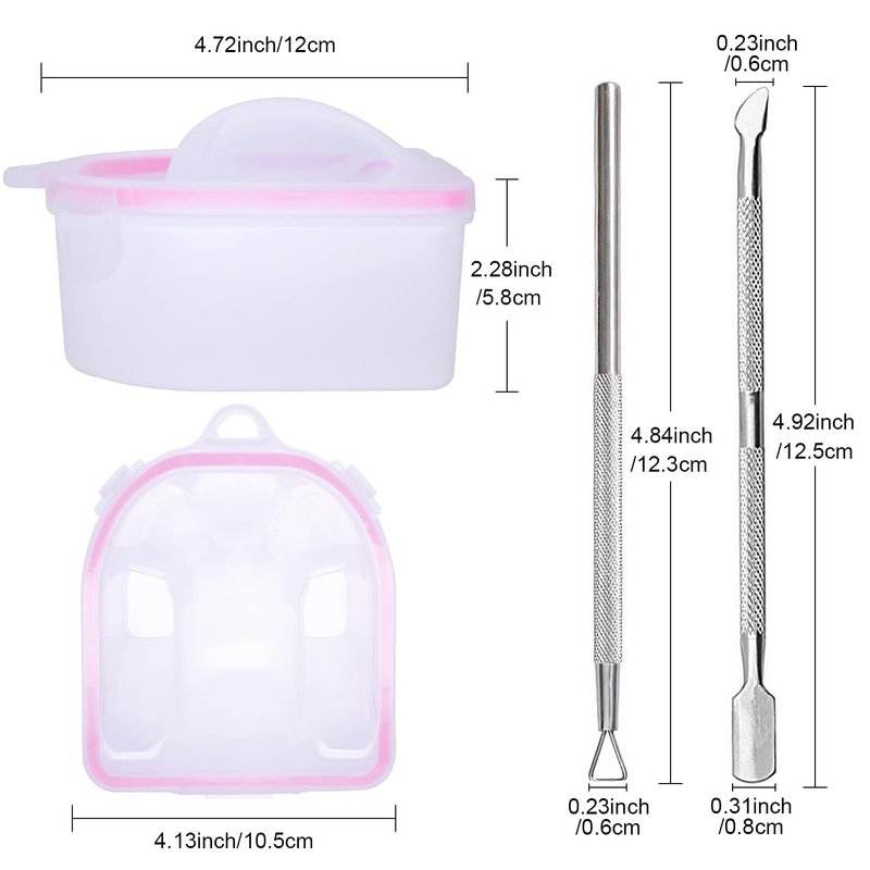- 【Package Includes】- You will get 2pcs nail remover bowl, 1pcs cuticle peeler,1pcs pusher cutter which will provide you with professional nail polish remover experience. Great for nail salon and home use.