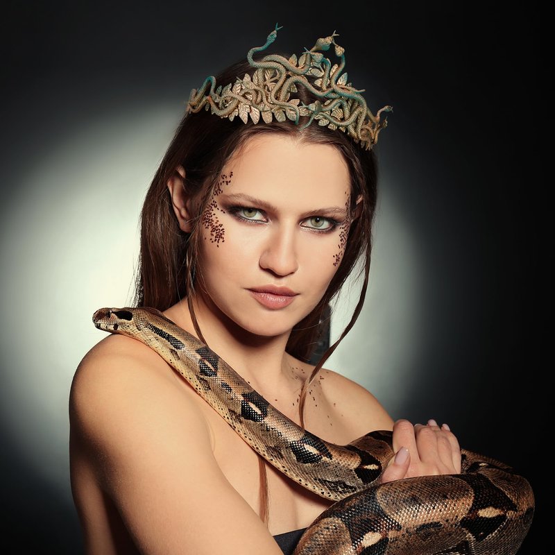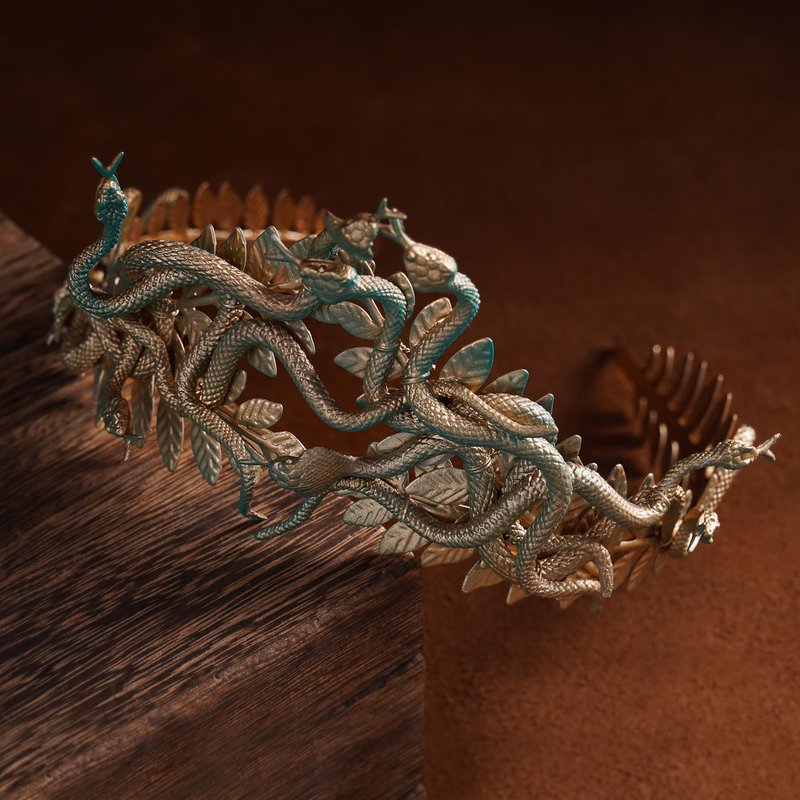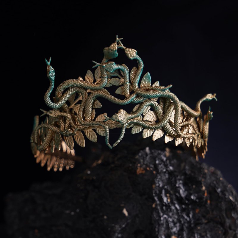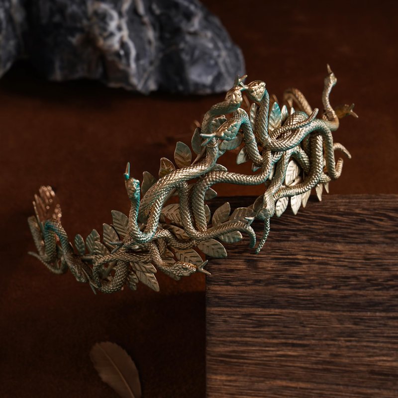 - Adding Glitter: Medusa Snake Crown featuring bold snakes and accented with laurel leaves in the same color, this headpiece adds a touch of mystery and glamor to any outfit or look