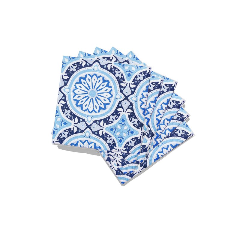 - BLUE GEOMETRIC PARTY SUPPLIES - Featuring a beautiful white & blue geometric pattern, these cocktail napkins will elevate any gathering. Customers of Coterie across the country have used our decorations as a sure-fire way to warm the hearts of every guest you serve!