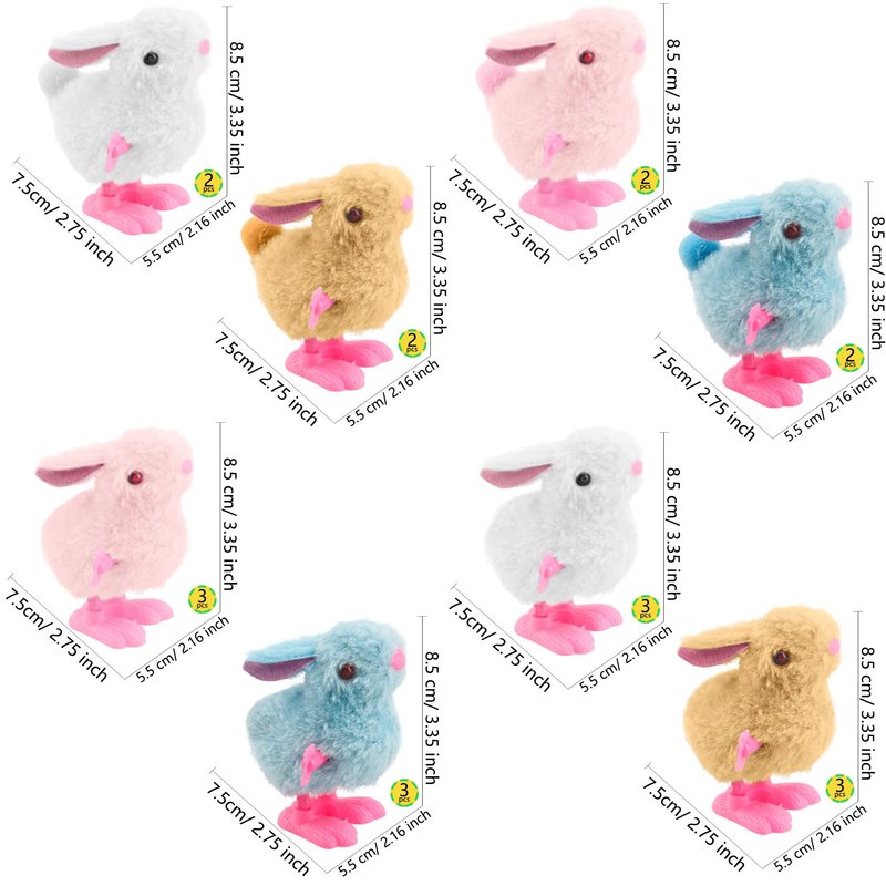 - Size detail: Note: Choking Hazard - Small Parts. Only for kids over 3 years old. The wind up plush bunny toys are about 8 x 5.5 x 8.5 cm/ 3.3 x 2.2 x 3.3 inches in length, width and height. The toys have perfect size for a comfortable grip, also suitable for being stuffed into the Easter eggs, gift boxes and baskets
