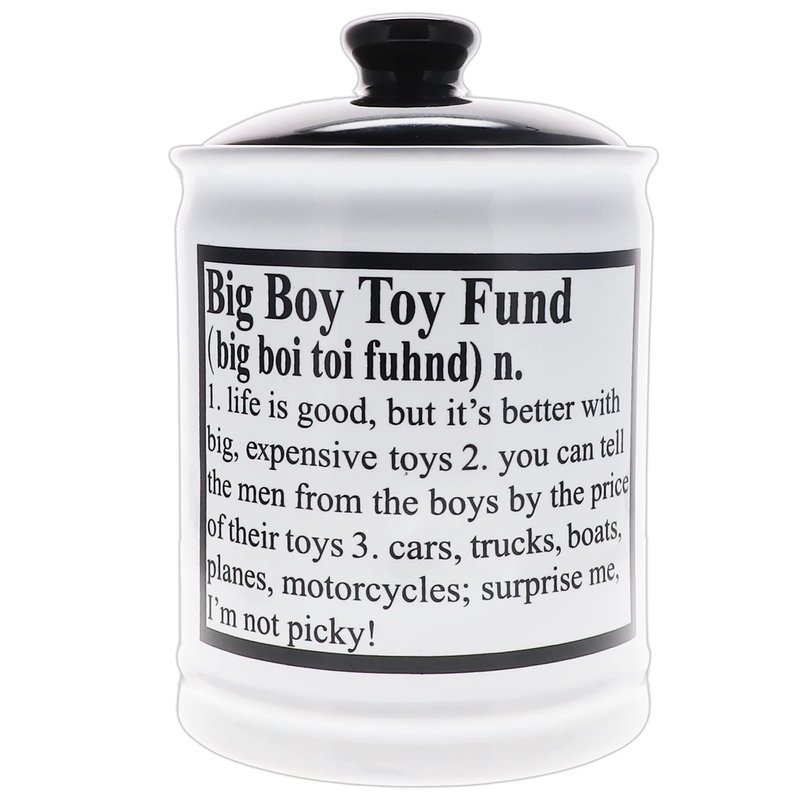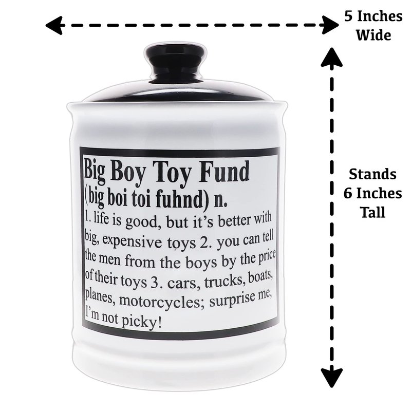 - ✅ GIFT BOXED: Packed in a fun printed gift box, Big Boy Toy Fund savings banks are perfect novelty gifts for men, dad gifts, fun boyfriend gifts, friend gifts, brother gifts and more.
