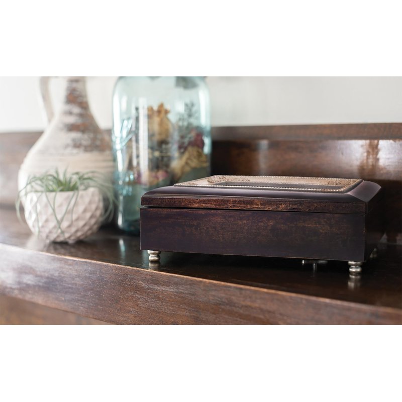- Beautiful Italian inspired design with a rich burlwood finish and silver color inlay photo frame lid.
